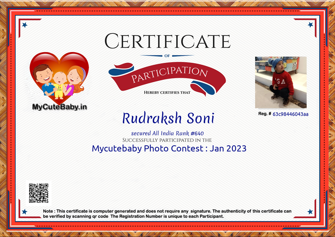 Participation certificate for all the participants whose mycutebaby votes are more than 1000.