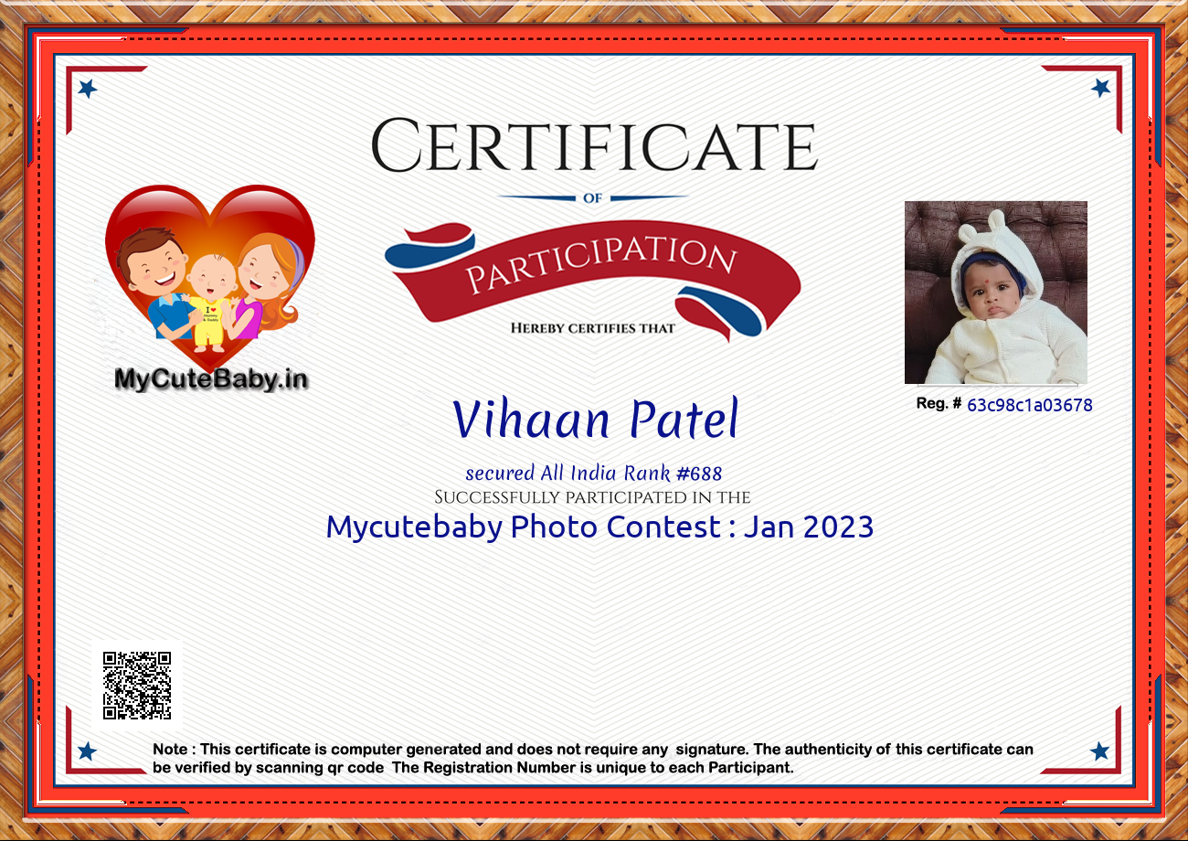 Participation certificate for all the participants whose mycutebaby votes are more than 1000.