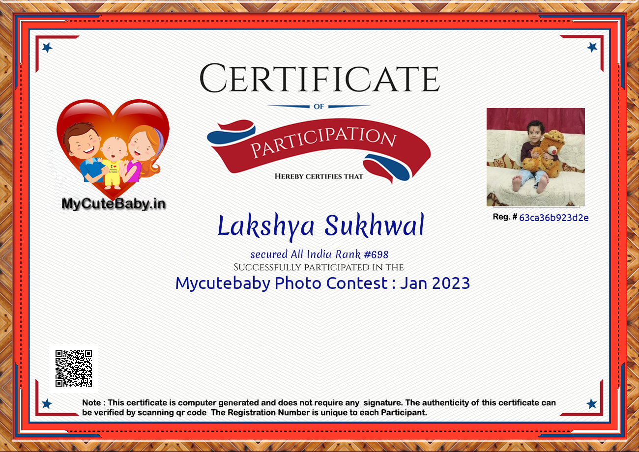 Participation certificate for all the participants whose mycutebaby votes are more than 1000.