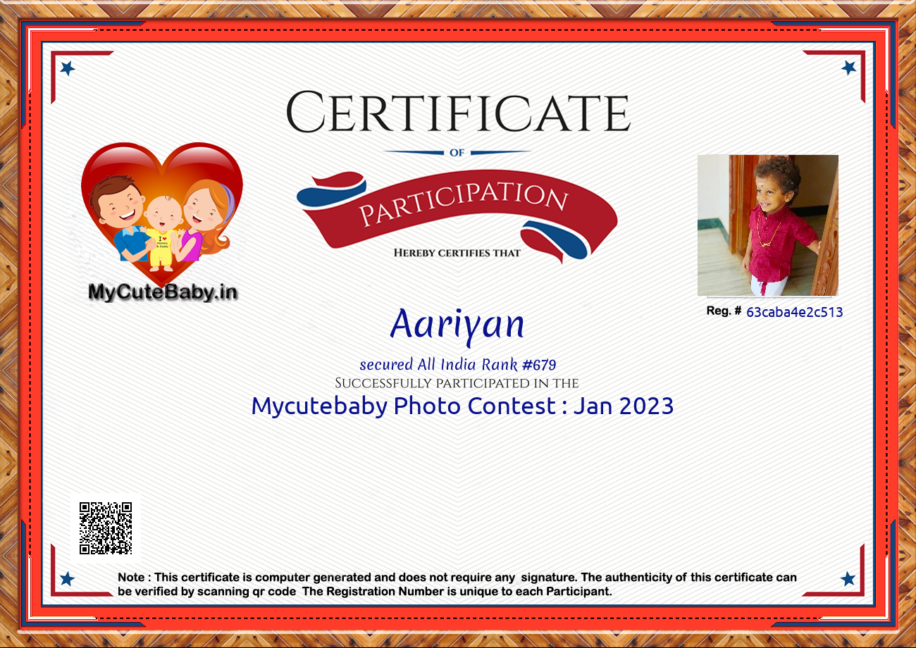 Participation certificate for all the participants whose mycutebaby votes are more than 1000.