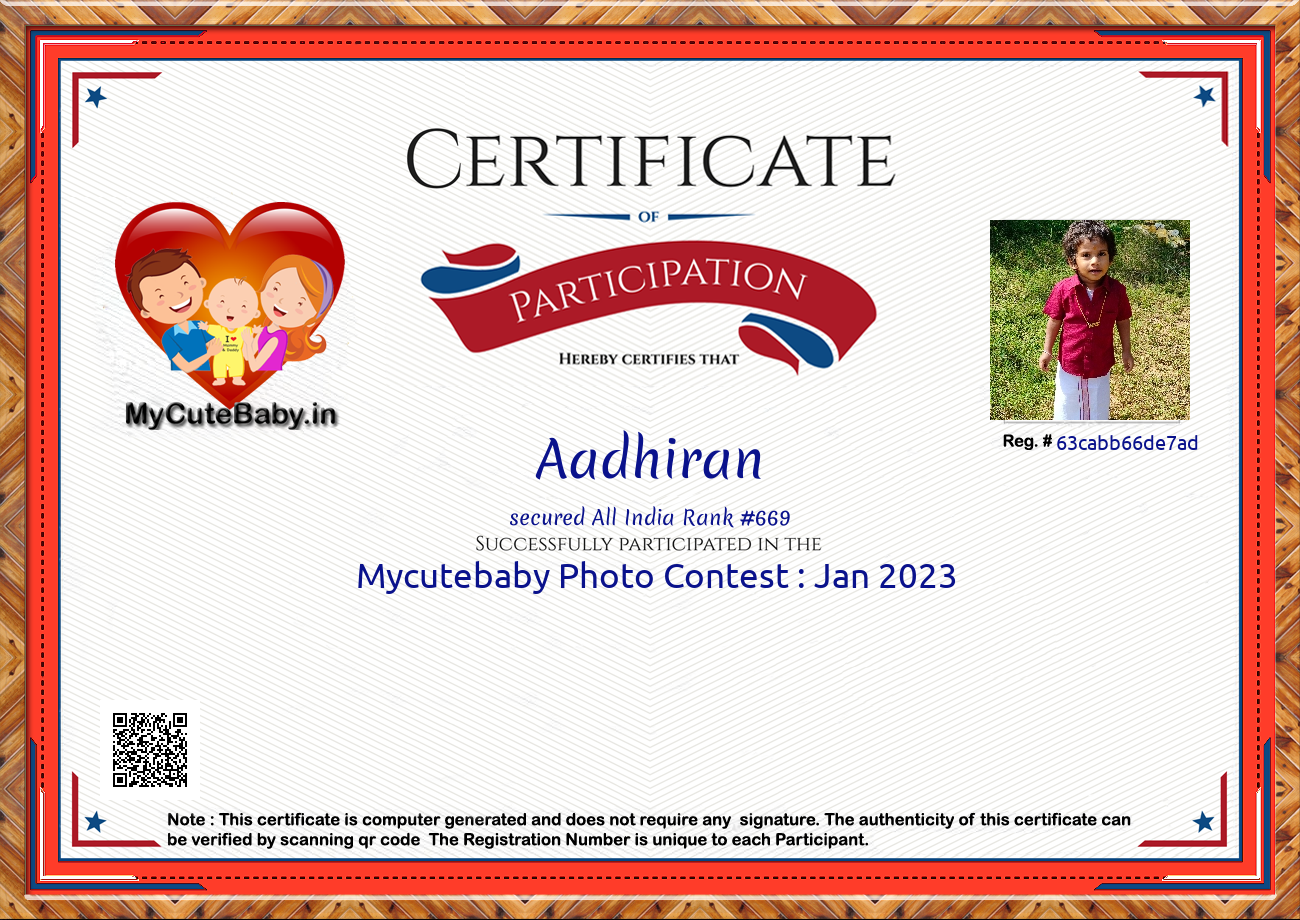 Participation certificate for all the participants whose mycutebaby votes are more than 1000.