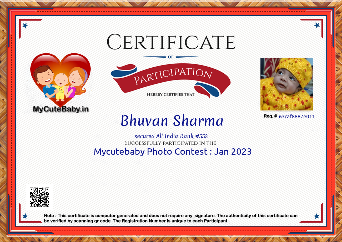 Participation certificate for all the participants whose mycutebaby votes are more than 1000.