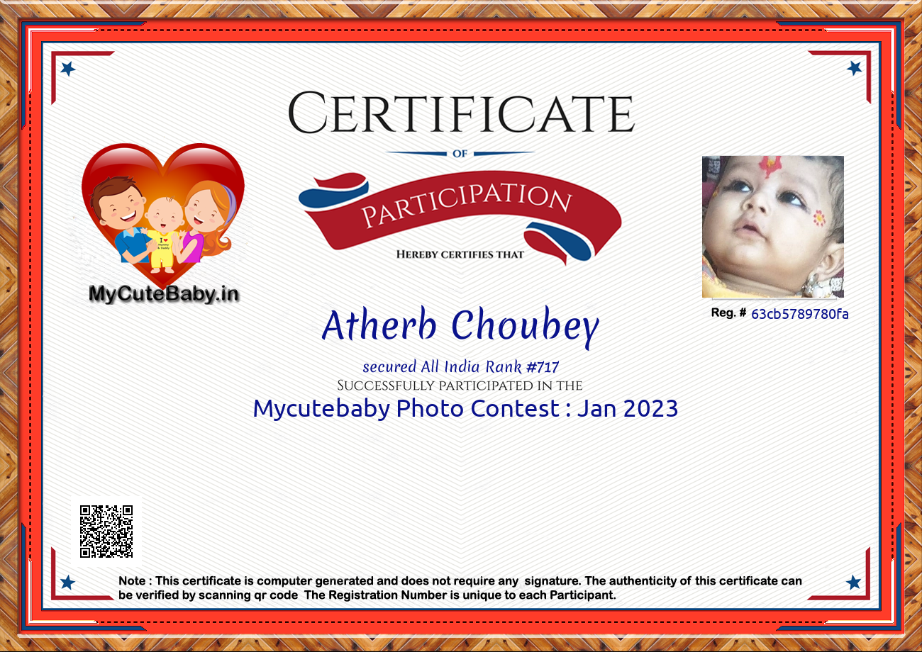 Participation certificate for all the participants whose mycutebaby votes are more than 1000.
