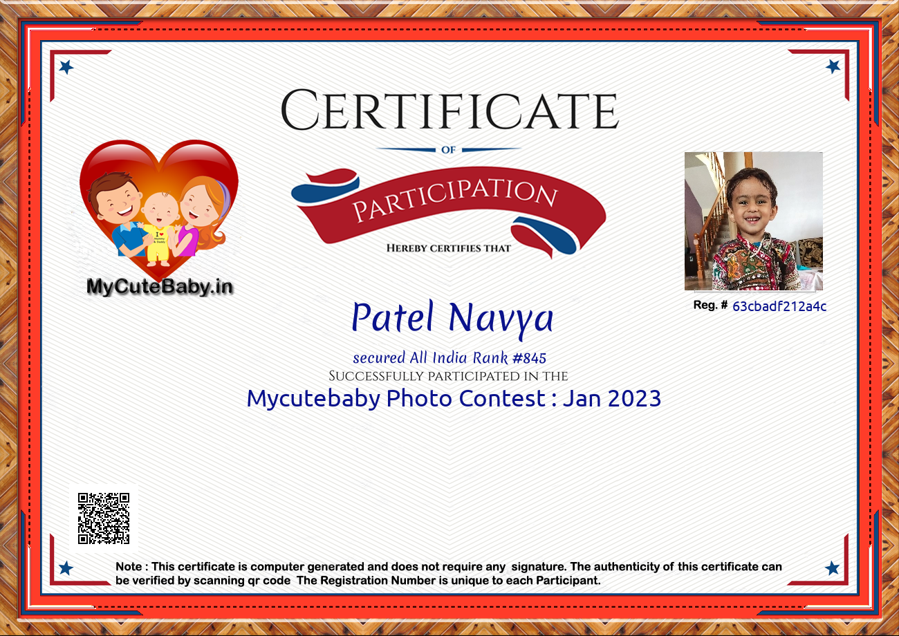 Participation certificate for all the participants whose mycutebaby votes are more than 1000.