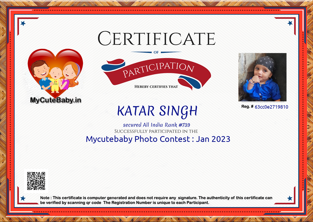 Participation certificate for all the participants whose mycutebaby votes are more than 1000.