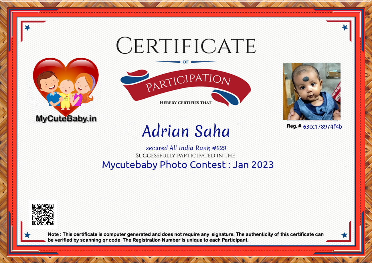 Participation certificate for all the participants whose mycutebaby votes are more than 1000.