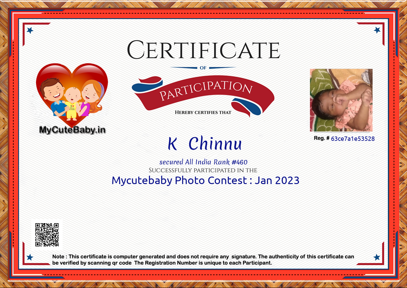 Participation certificate for all the participants whose mycutebaby votes are more than 1000.