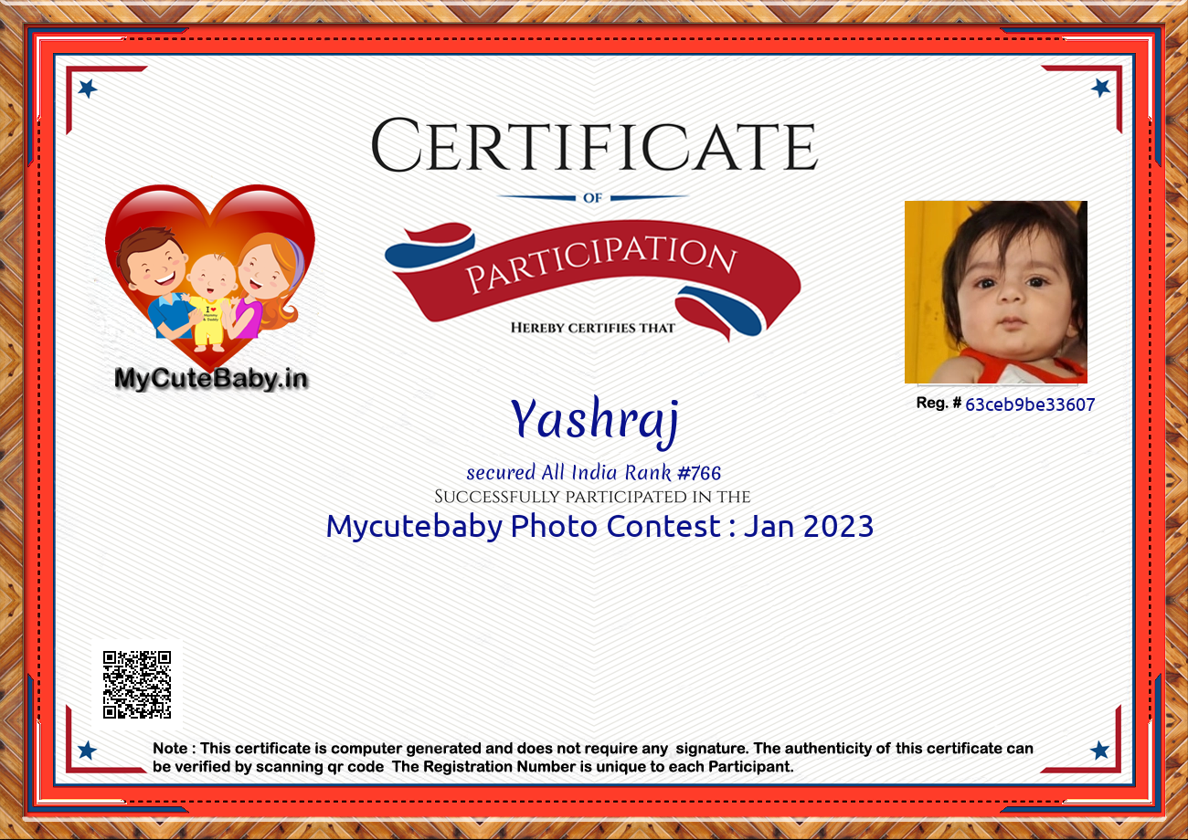 Participation certificate for all the participants whose mycutebaby votes are more than 1000.