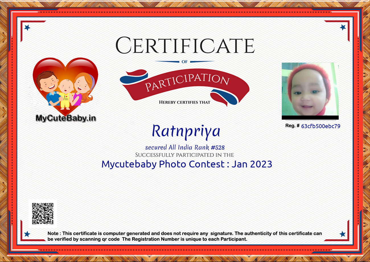 Participation certificate for all the participants whose mycutebaby votes are more than 1000.