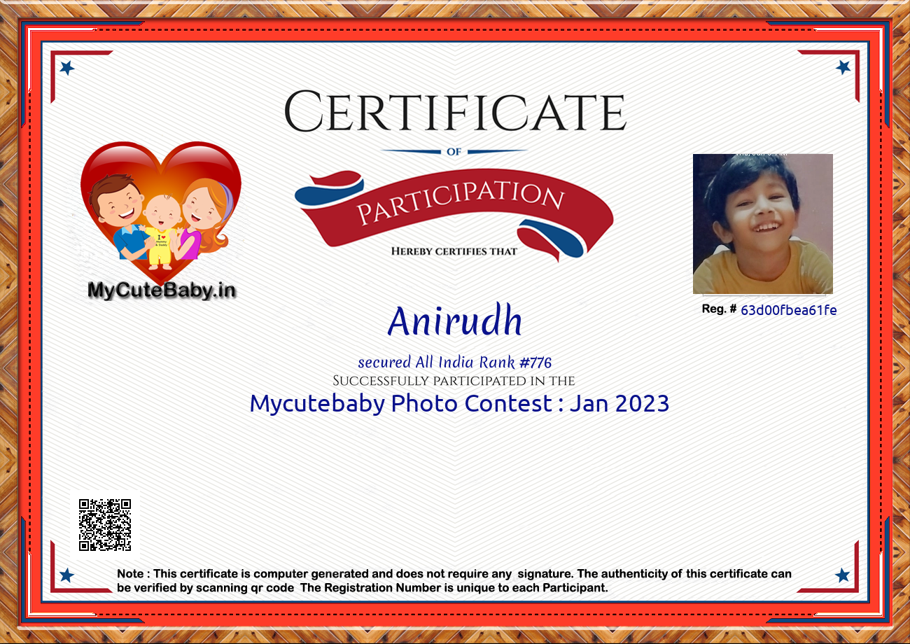 Participation certificate for all the participants whose mycutebaby votes are more than 1000.