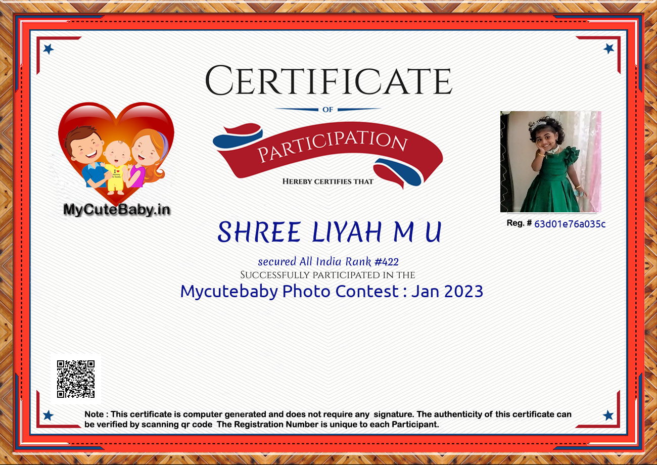 Participation certificate for all the participants whose mycutebaby votes are more than 1000.