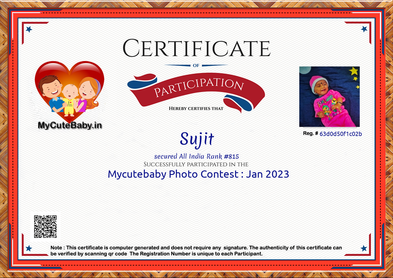 Participation certificate for all the participants whose mycutebaby votes are more than 1000.
