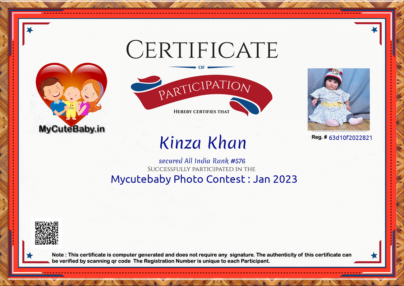 Participation certificate for all the participants whose mycutebaby votes are more than 1000.
