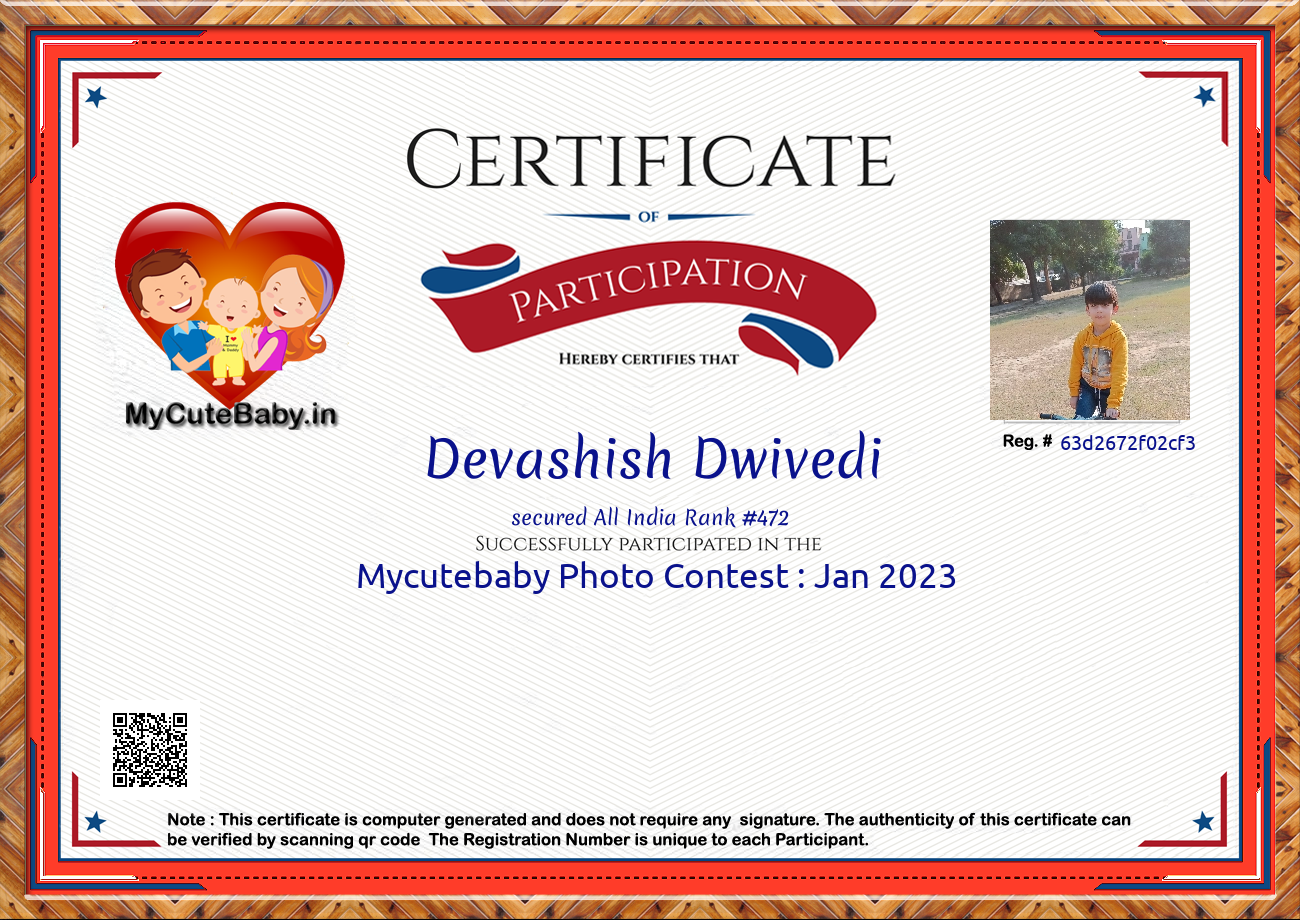 Participation certificate for all the participants whose mycutebaby votes are more than 1000.