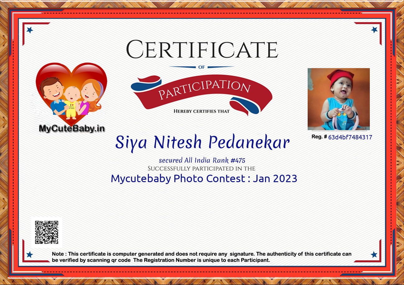Participation certificate for all the participants whose mycutebaby votes are more than 1000.