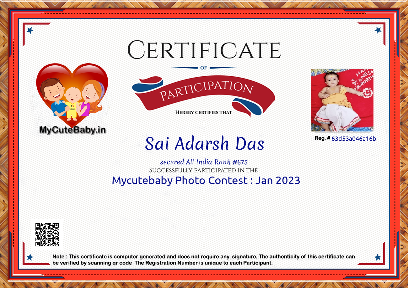 Participation certificate for all the participants whose mycutebaby votes are more than 1000.