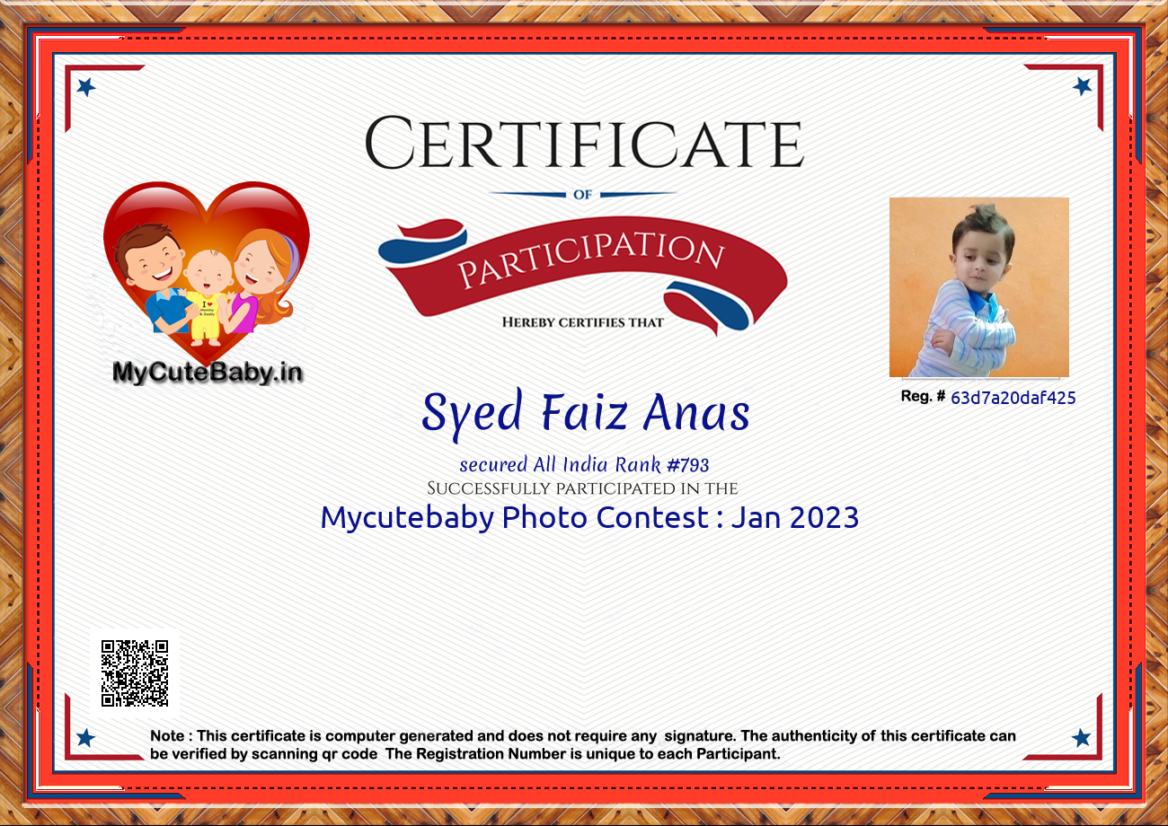 Participation certificate for all the participants whose mycutebaby votes are more than 1000.