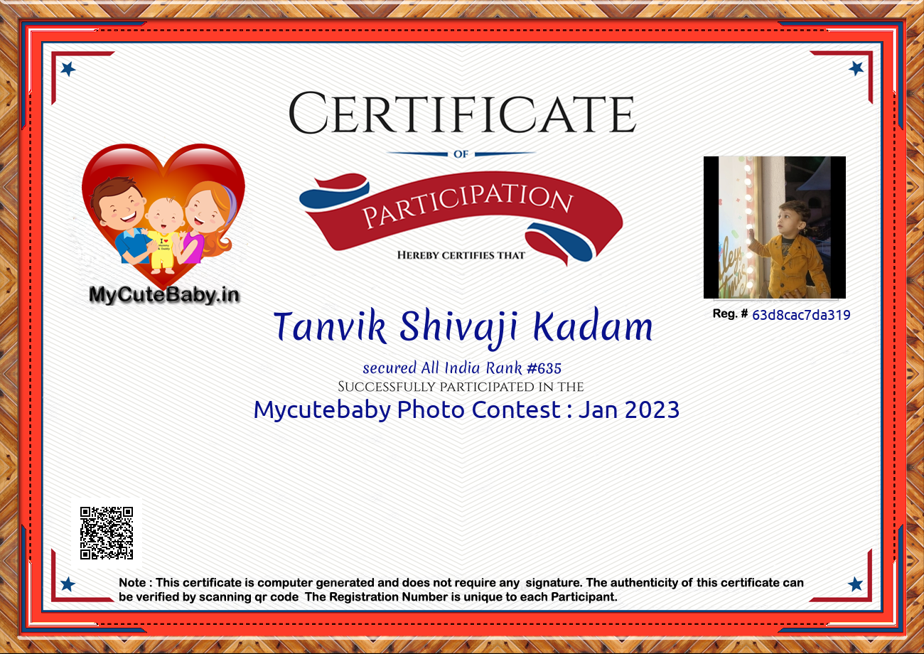 Participation certificate for all the participants whose mycutebaby votes are more than 1000.