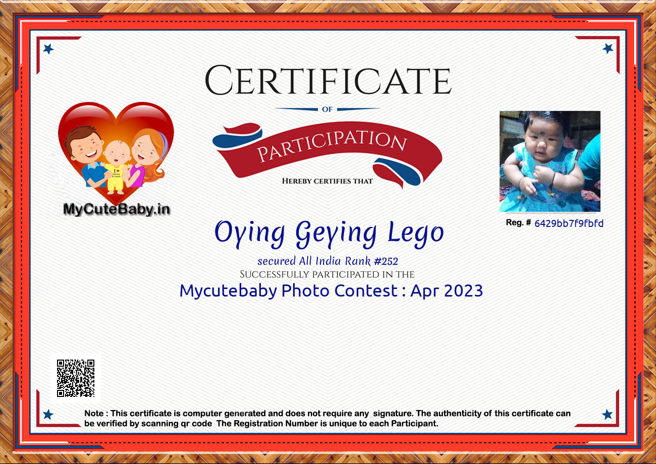Participation certificate for all the participants whose mycutebaby votes are more than 1000.