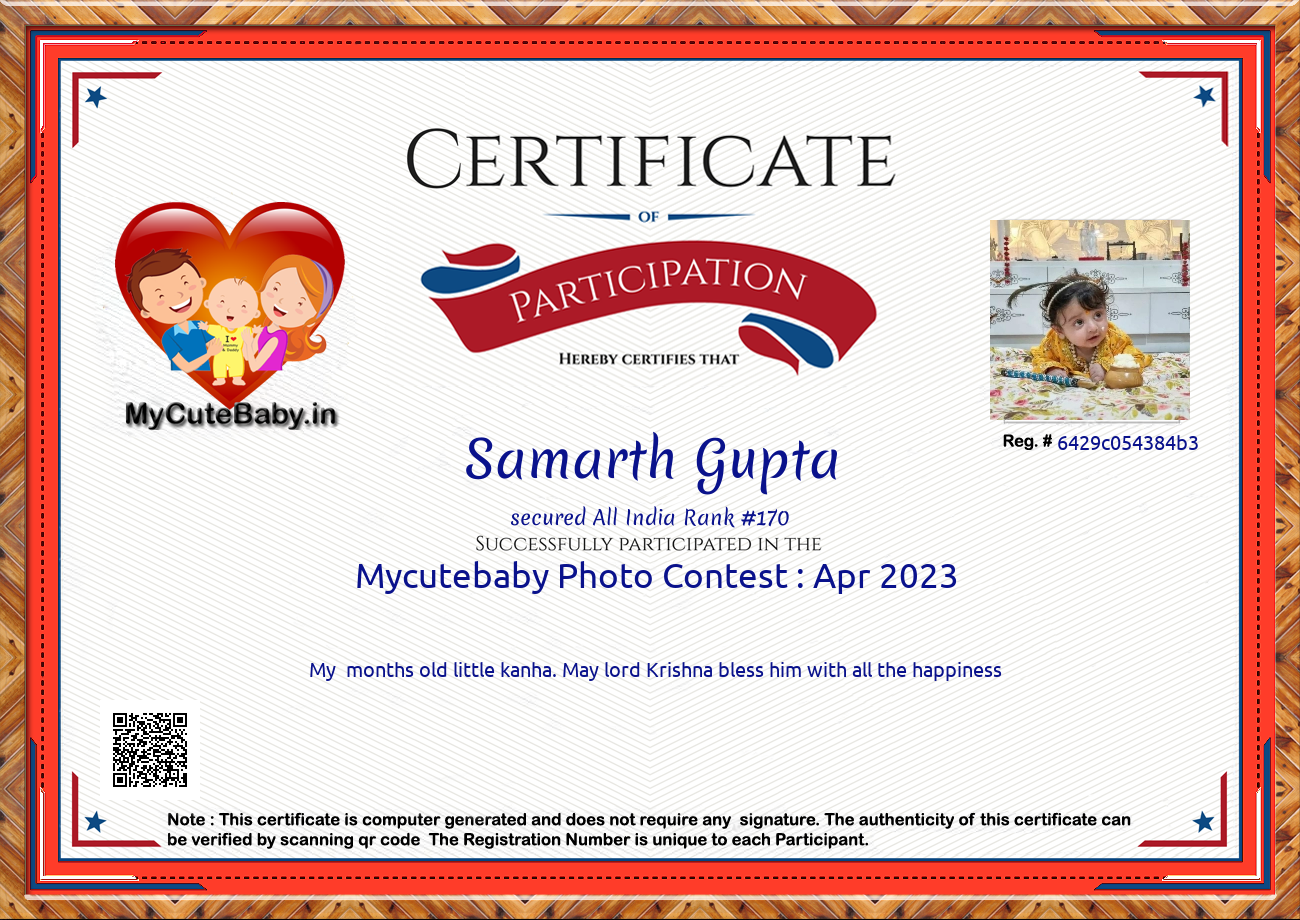 Participation certificate for all the participants whose mycutebaby votes are more than 1000.
