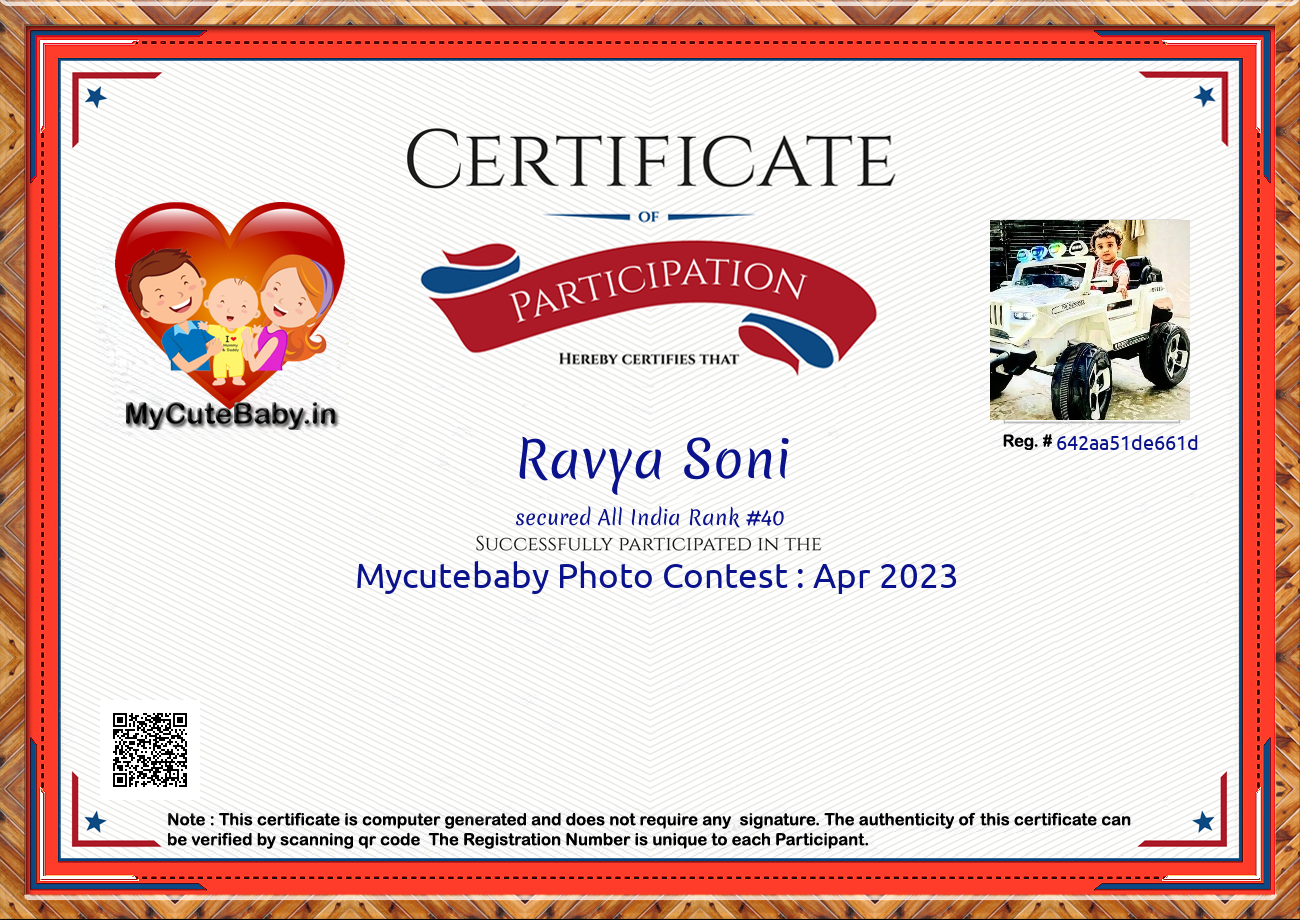 Participation certificate for all the participants whose mycutebaby votes are more than 1000.