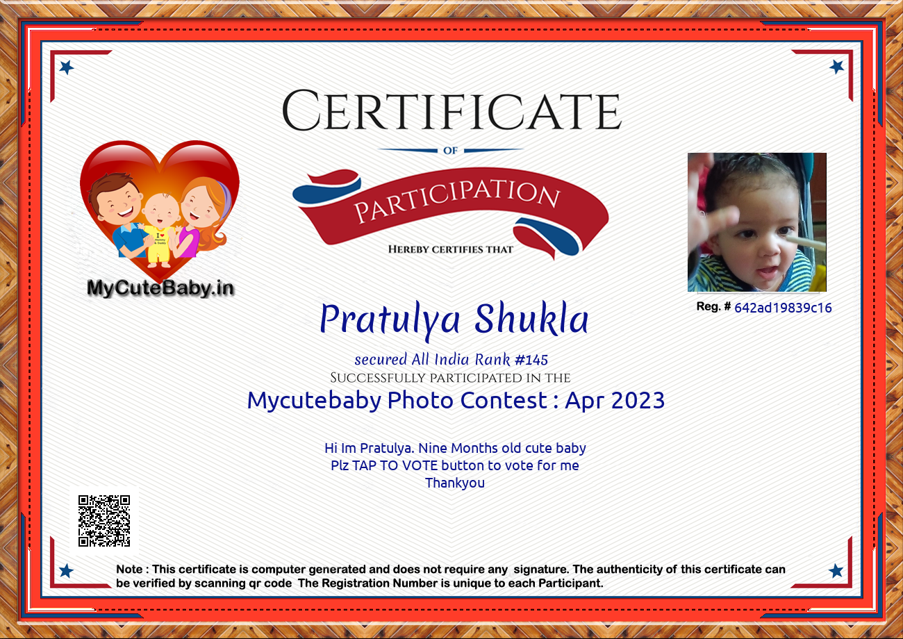 Participation certificate for all the participants whose mycutebaby votes are more than 1000.