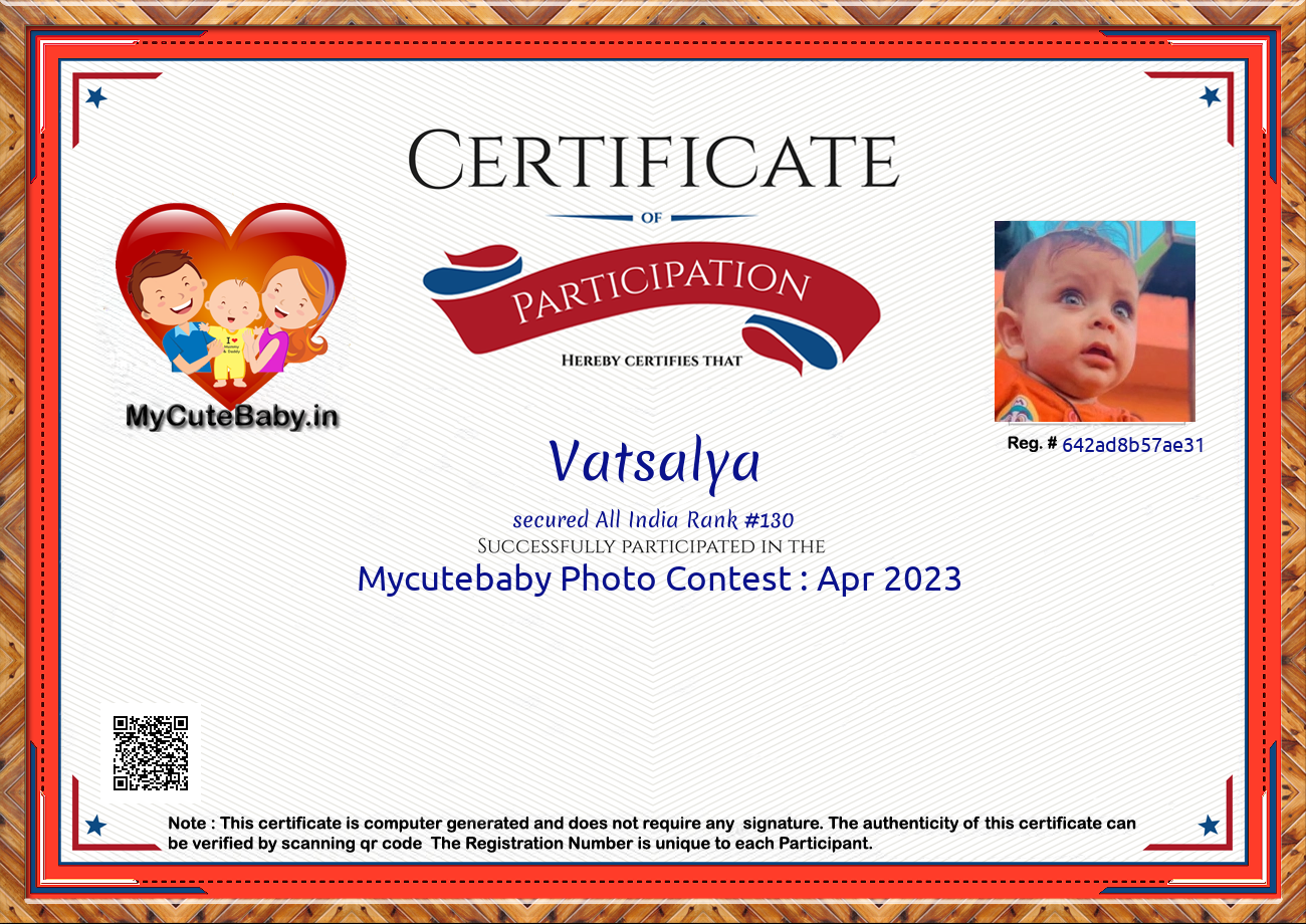 Participation certificate for all the participants whose mycutebaby votes are more than 1000.