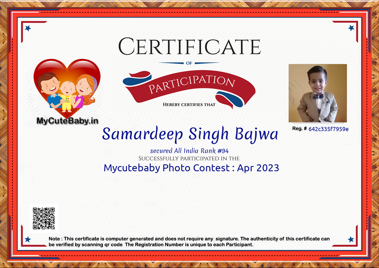 Participation certificate for all the participants whose mycutebaby votes are more than 1000.