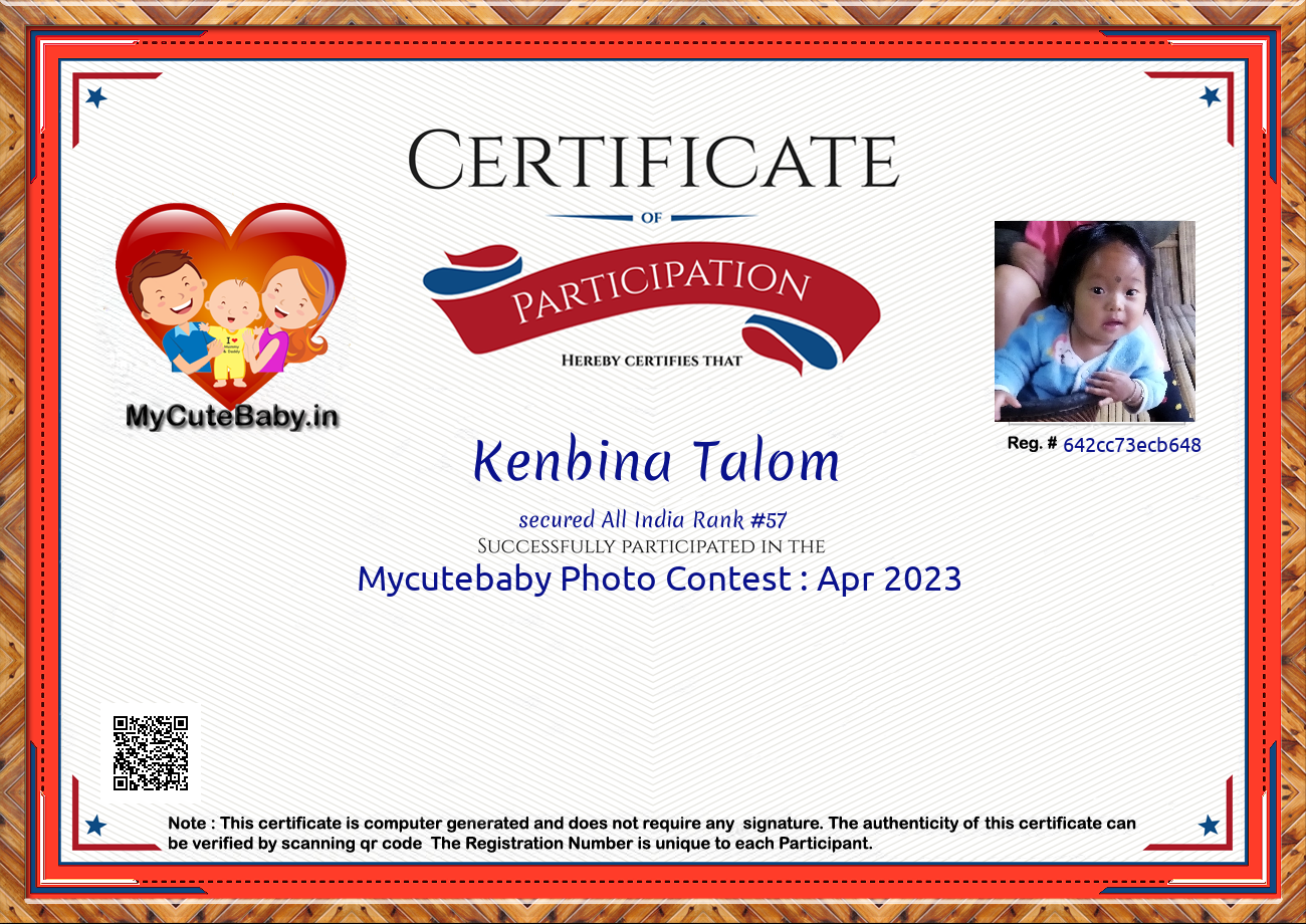 Participation certificate for all the participants whose mycutebaby votes are more than 1000.