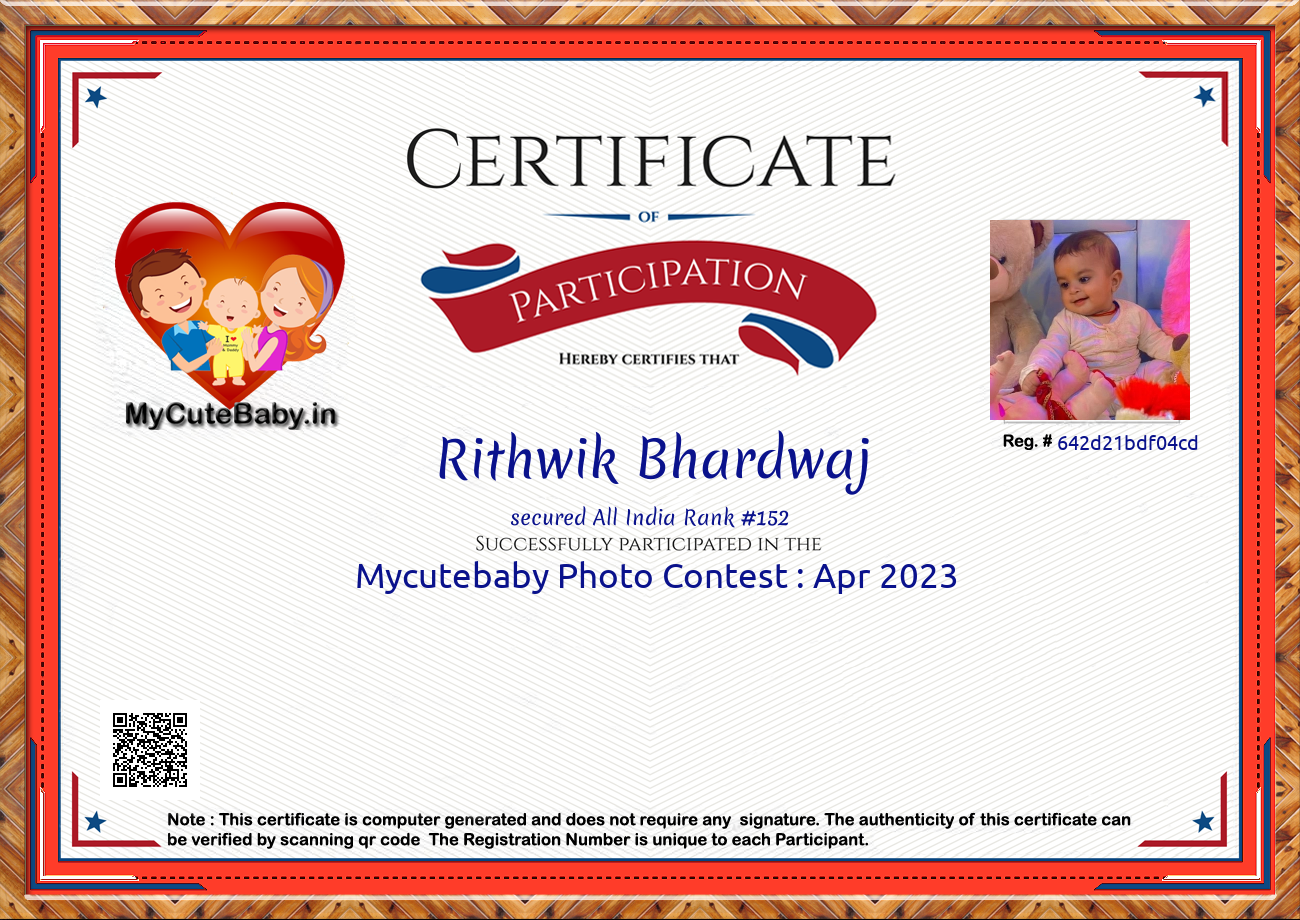 Participation certificate for all the participants whose mycutebaby votes are more than 1000.