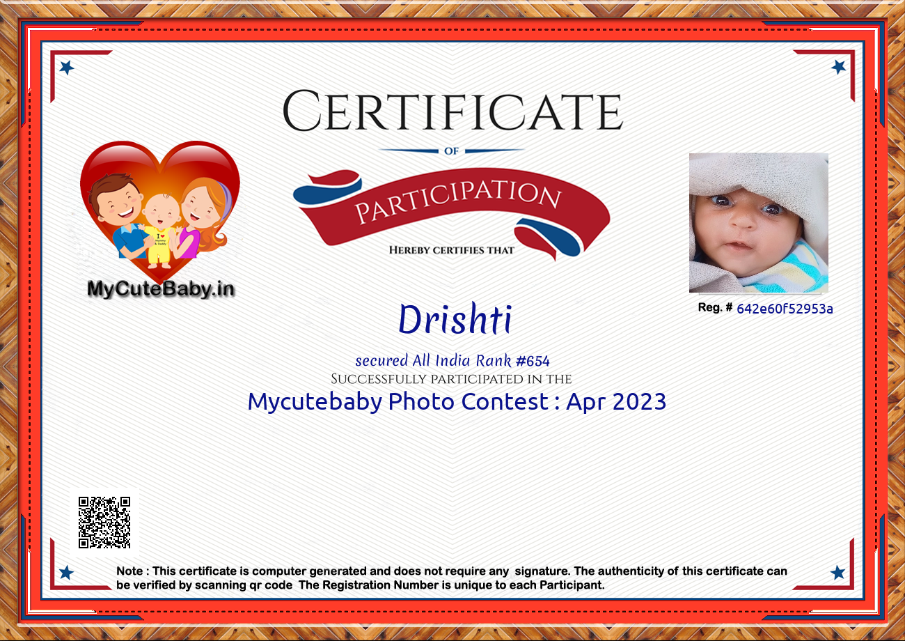 Participation certificate for all the participants whose mycutebaby votes are more than 1000.