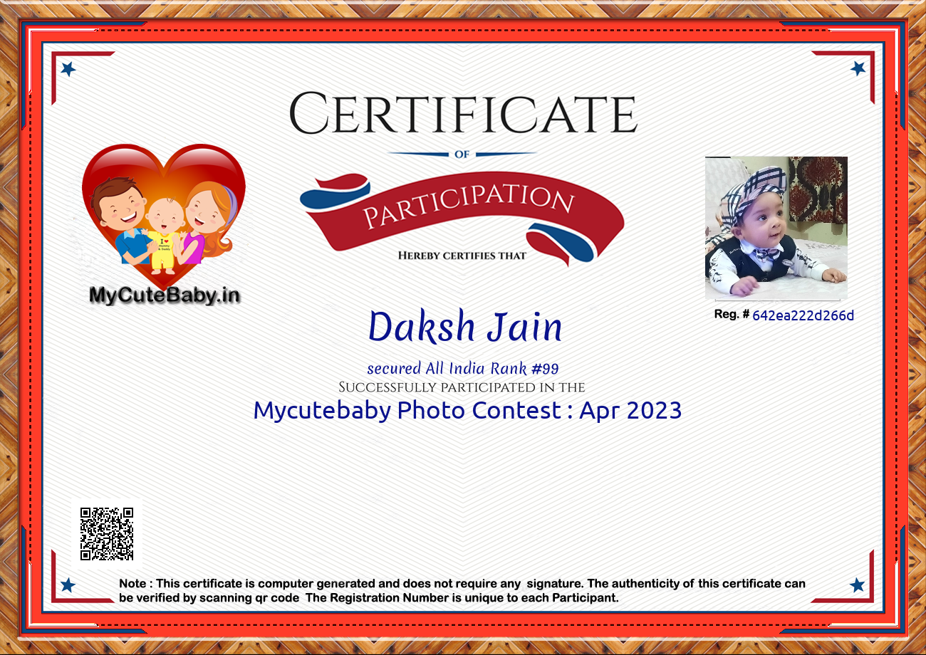 Participation certificate for all the participants whose mycutebaby votes are more than 1000.
