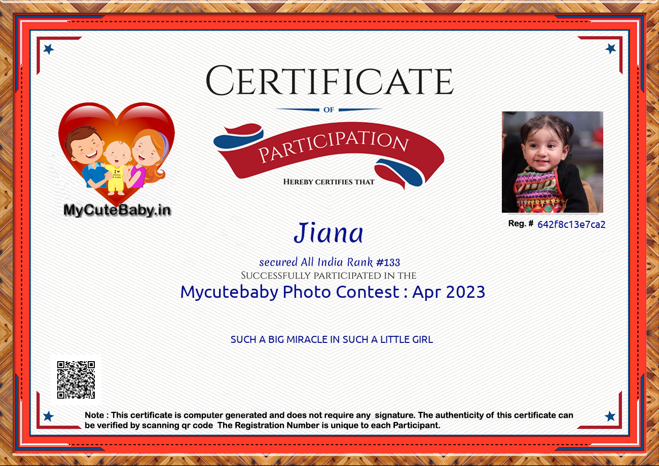 Participation certificate for all the participants whose mycutebaby votes are more than 1000.