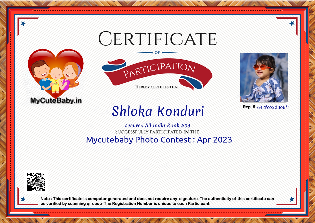 Participation certificate for all the participants whose mycutebaby votes are more than 1000.