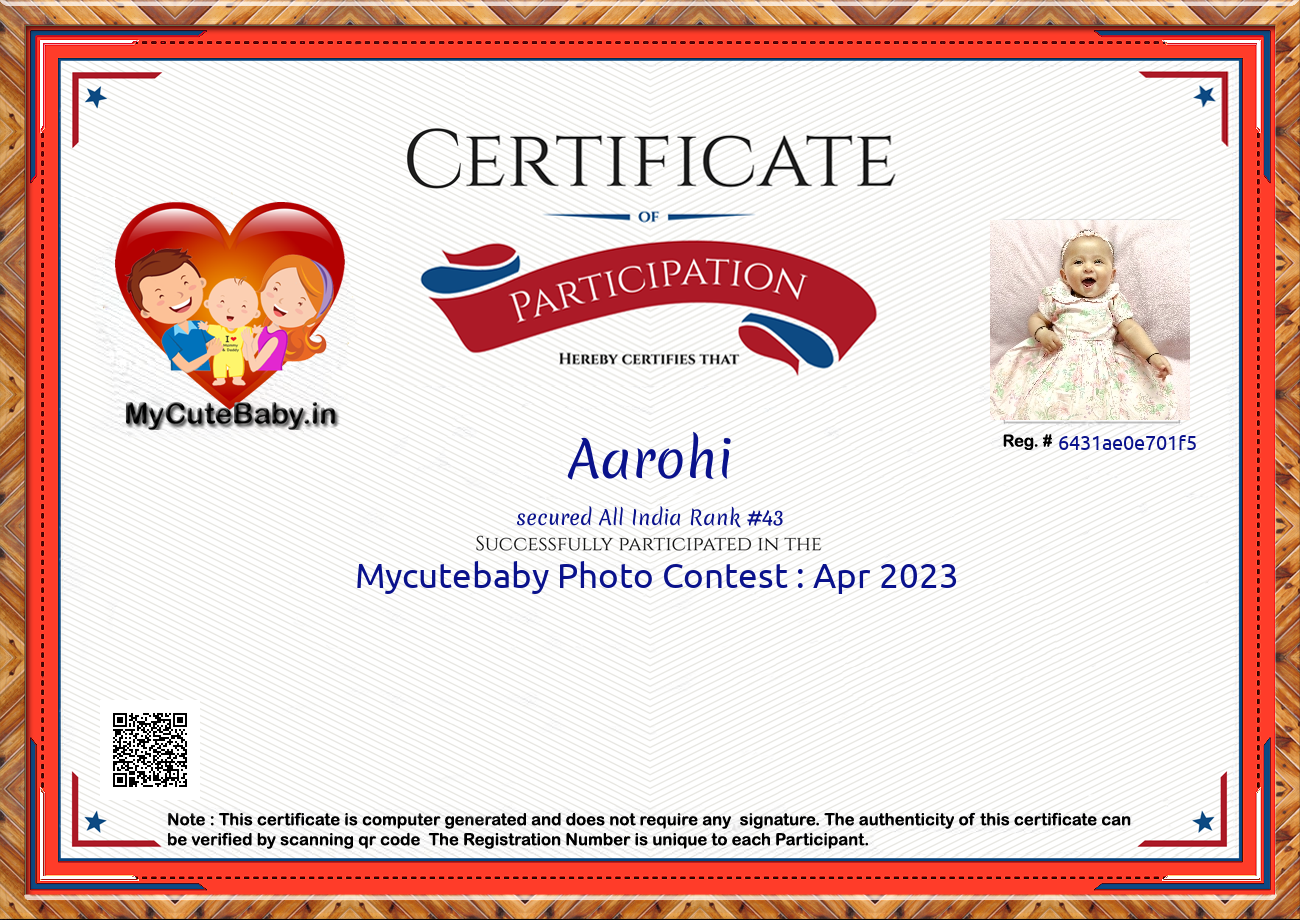 Participation certificate for all the participants whose mycutebaby votes are more than 1000.