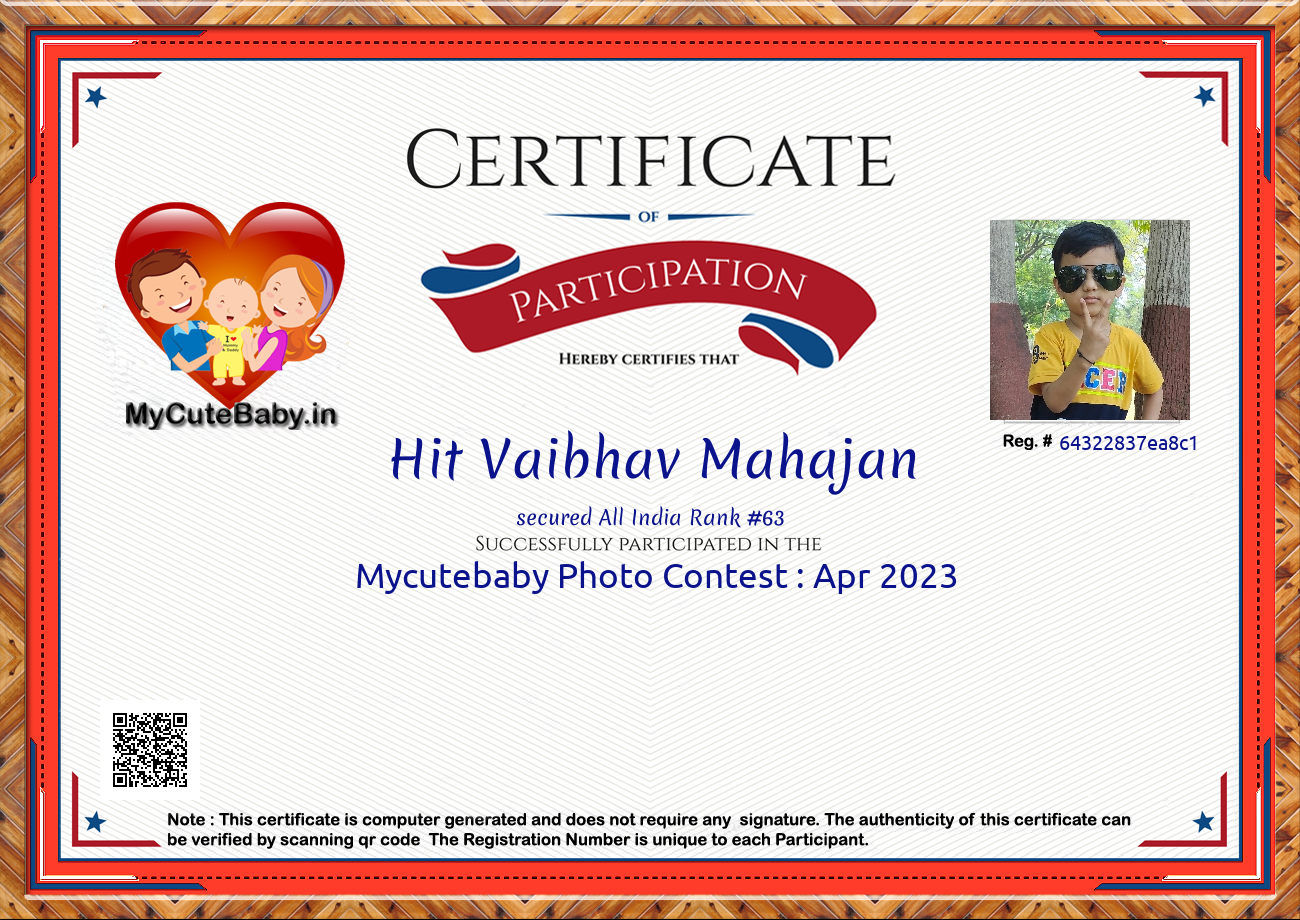 Participation certificate for all the participants whose mycutebaby votes are more than 1000.