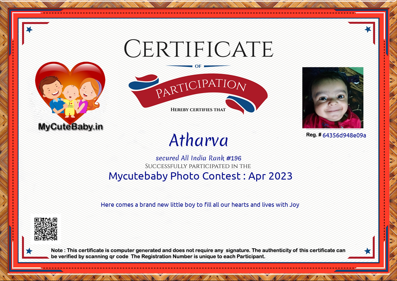 Participation certificate for all the participants whose mycutebaby votes are more than 1000.