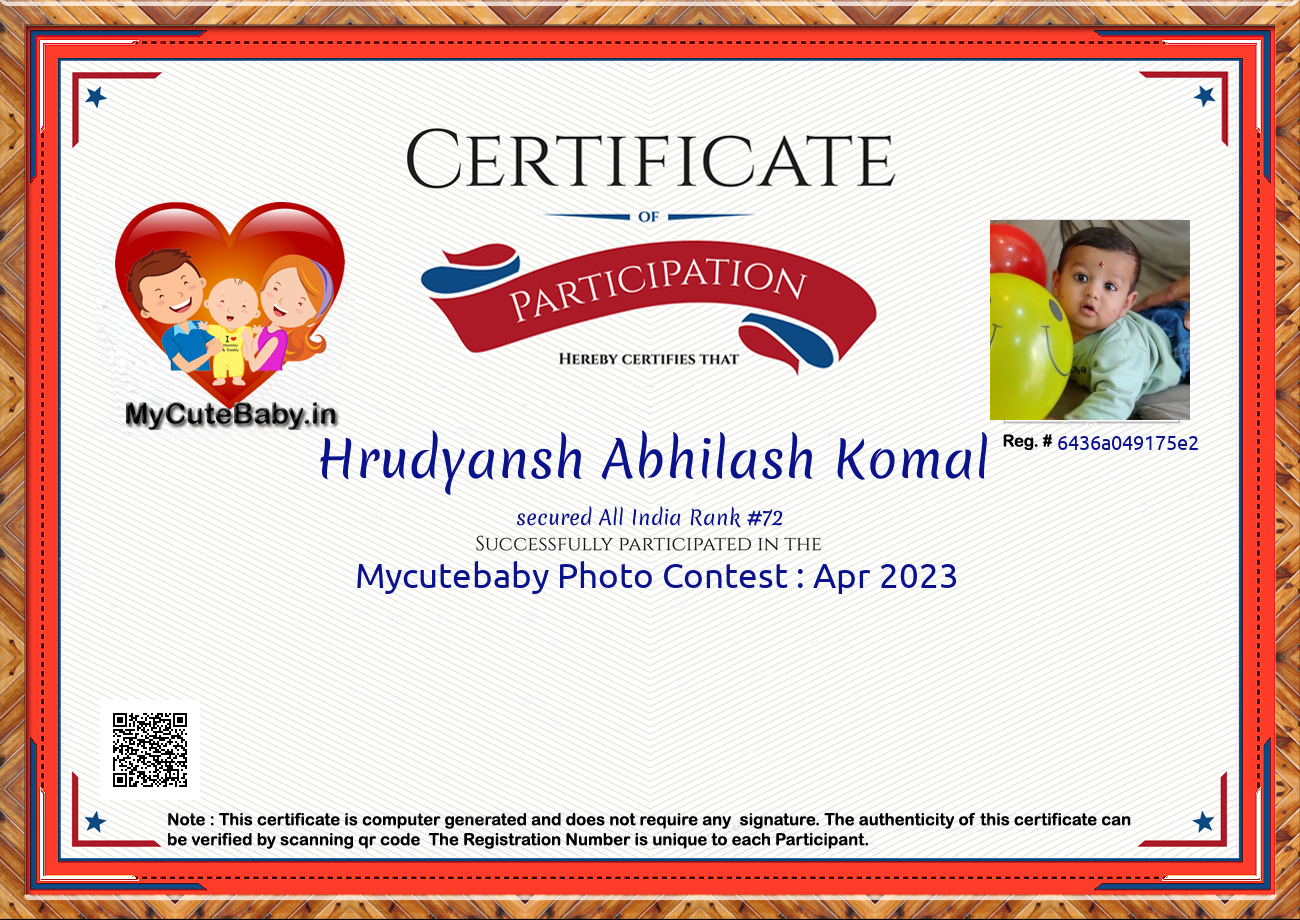 Participation certificate for all the participants whose mycutebaby votes are more than 1000.
