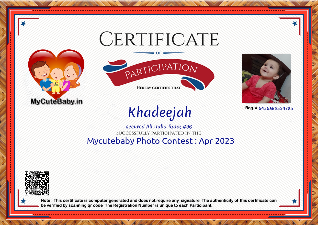 Participation certificate for all the participants whose mycutebaby votes are more than 1000.