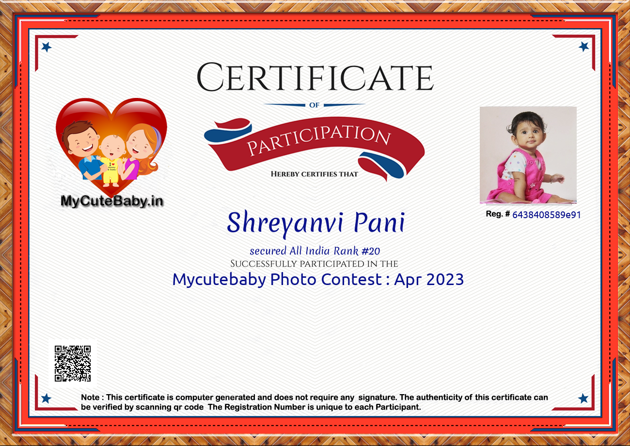 Participation certificate for all the participants whose mycutebaby votes are more than 1000.