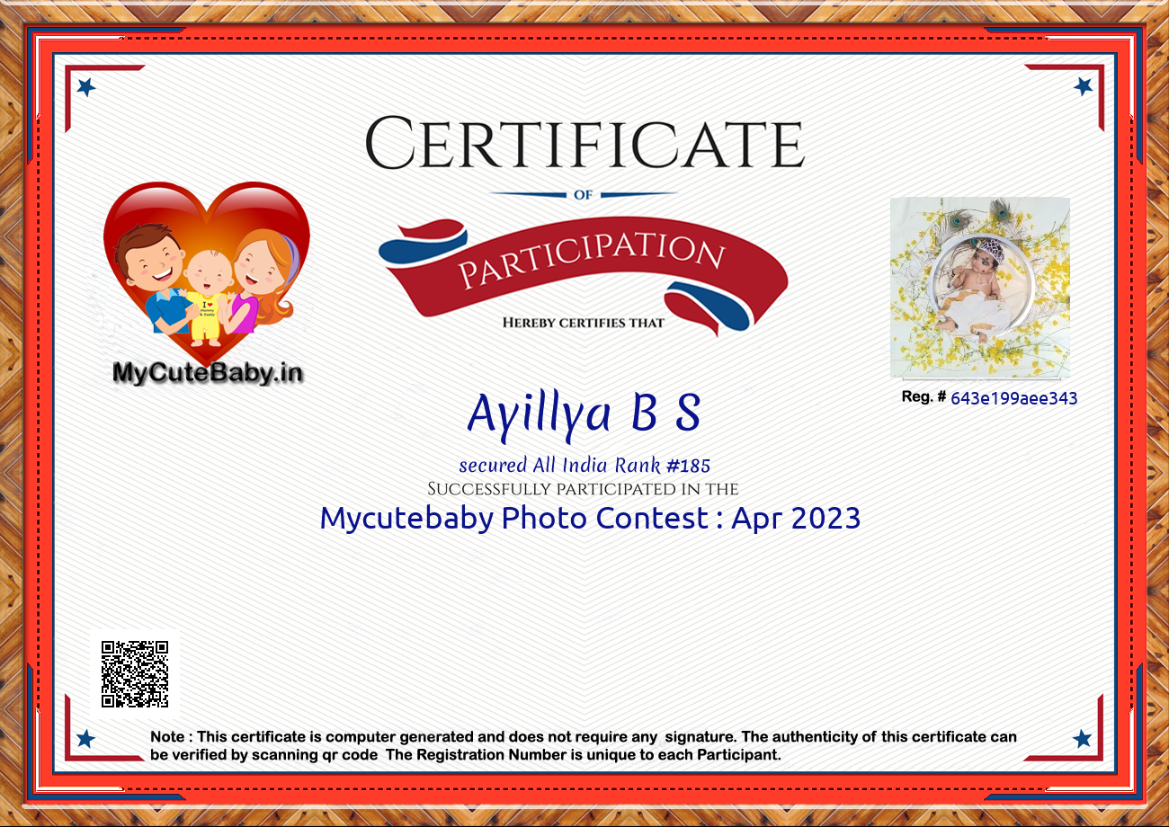 Participation certificate for all the participants whose mycutebaby votes are more than 1000.