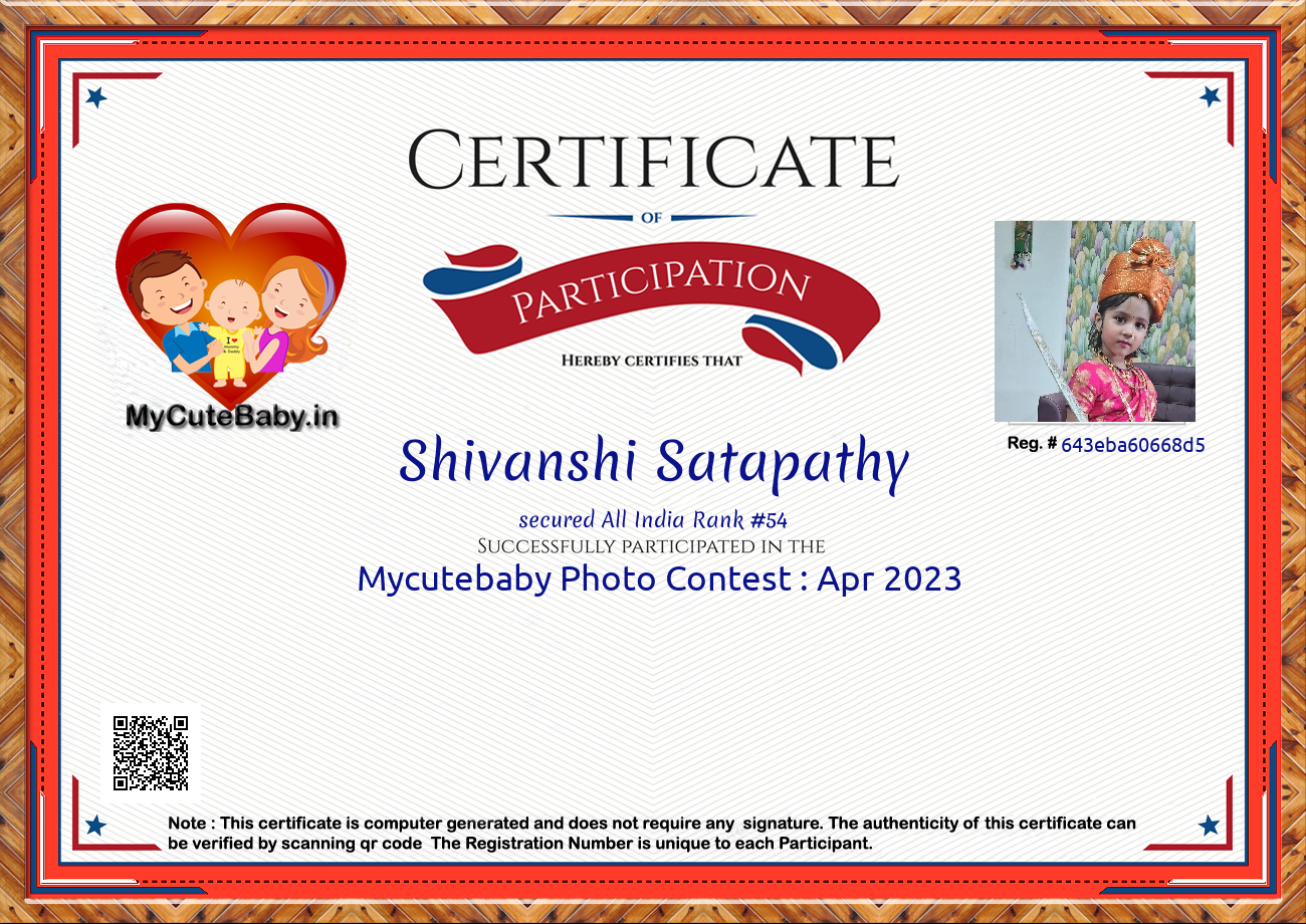 Participation certificate for all the participants whose mycutebaby votes are more than 1000.