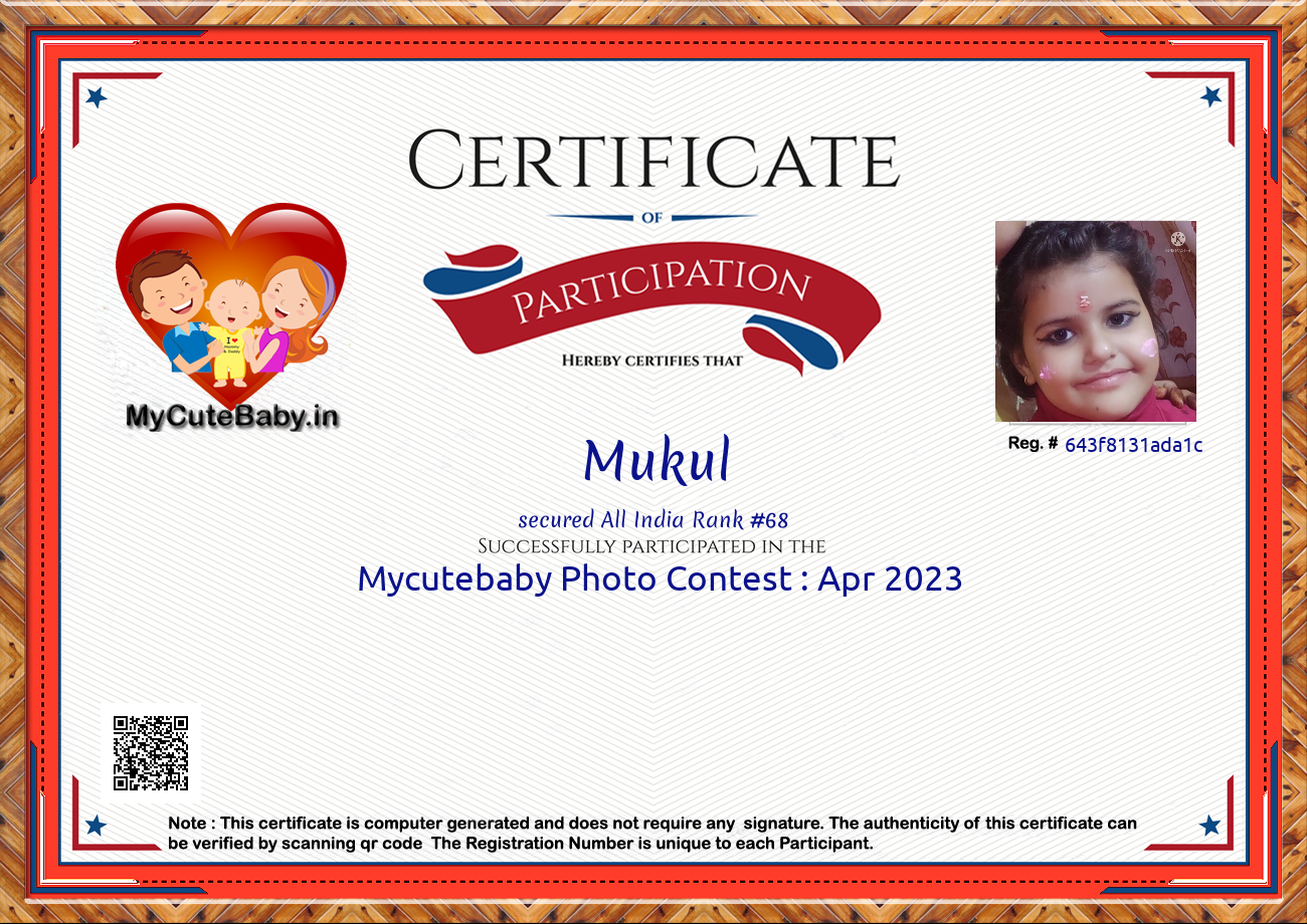 Participation certificate for all the participants whose mycutebaby votes are more than 1000.