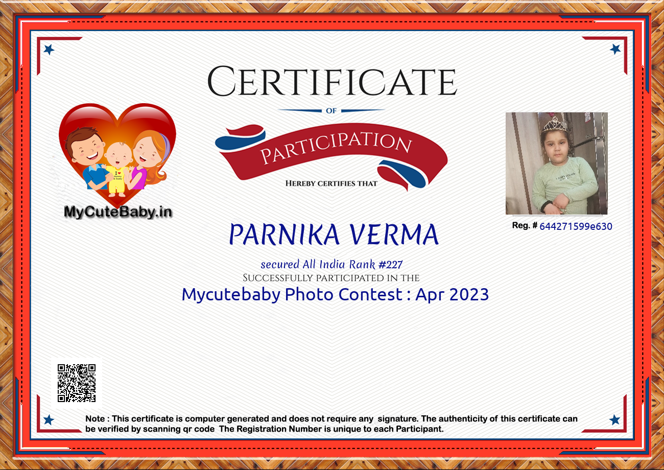 Participation certificate for all the participants whose mycutebaby votes are more than 1000.