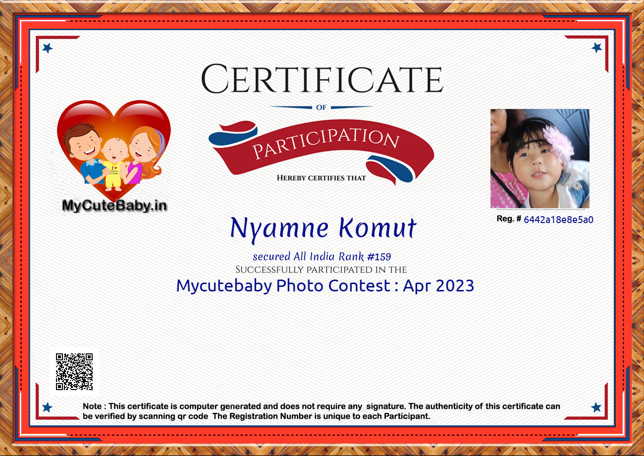 Participation certificate for all the participants whose mycutebaby votes are more than 1000.