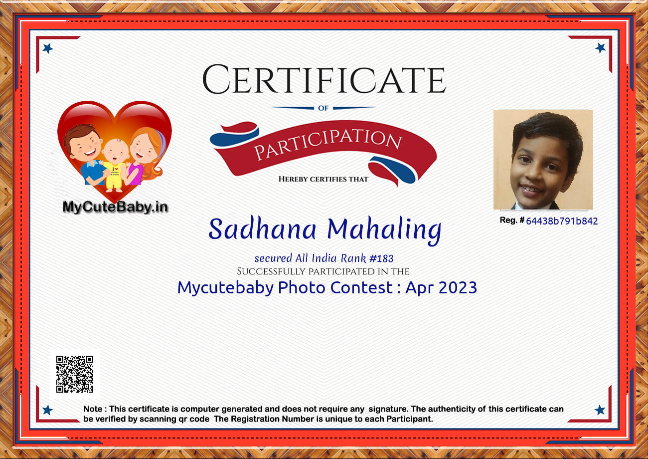 Participation certificate for all the participants whose mycutebaby votes are more than 1000.