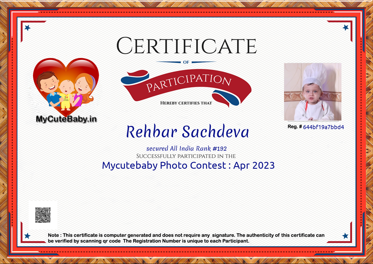 Participation certificate for all the participants whose mycutebaby votes are more than 1000.