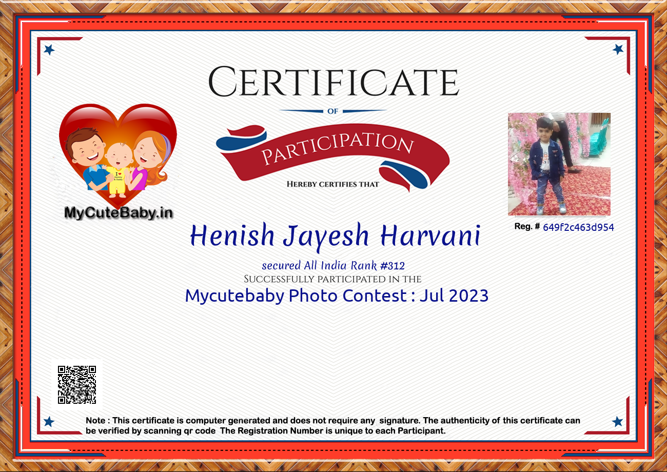 Participation certificate for all the participants whose mycutebaby votes are more than 1000.