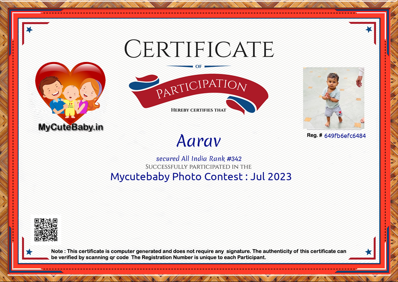 Participation certificate for all the participants whose mycutebaby votes are more than 1000.