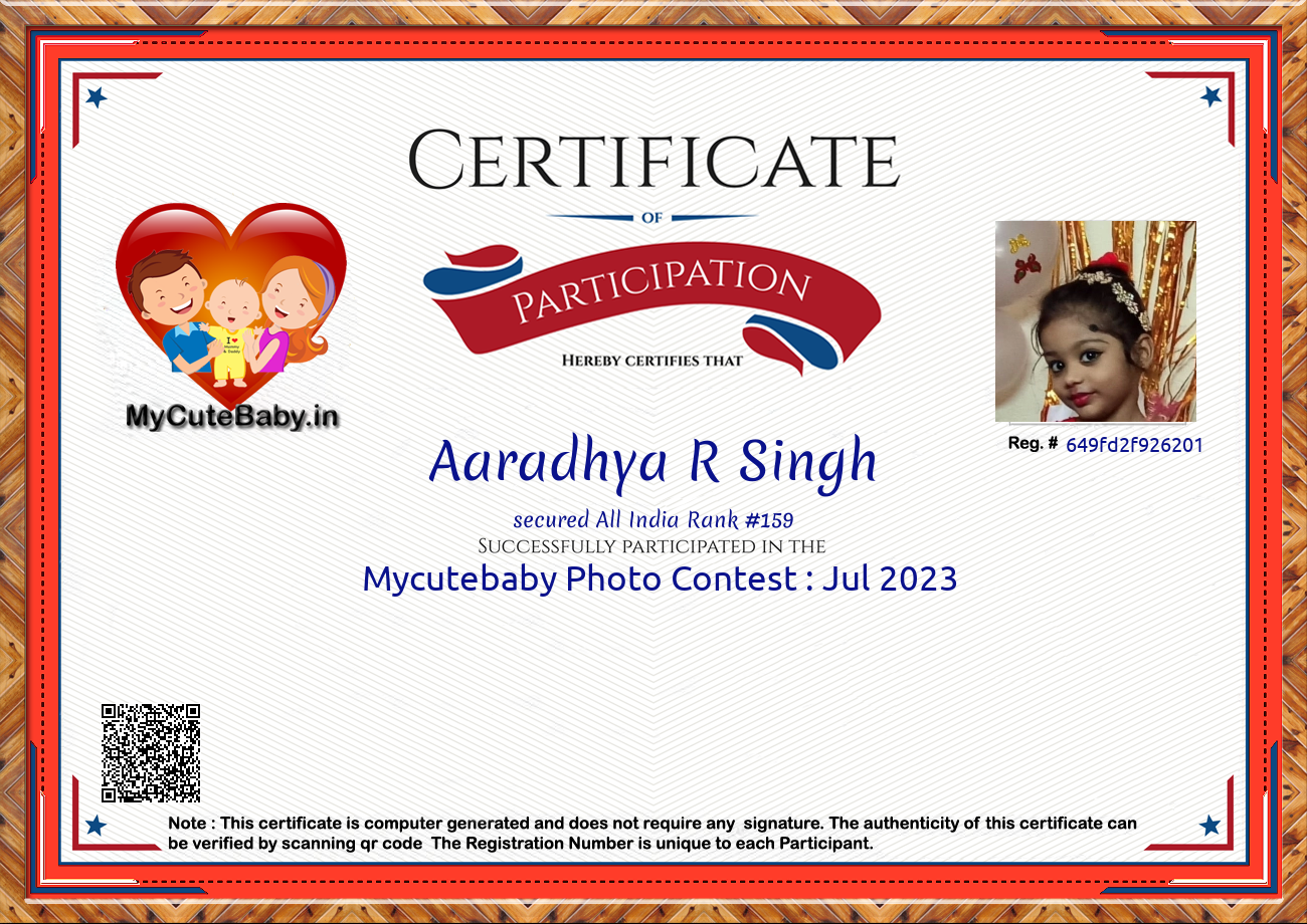 Participation certificate for all the participants whose mycutebaby votes are more than 1000.